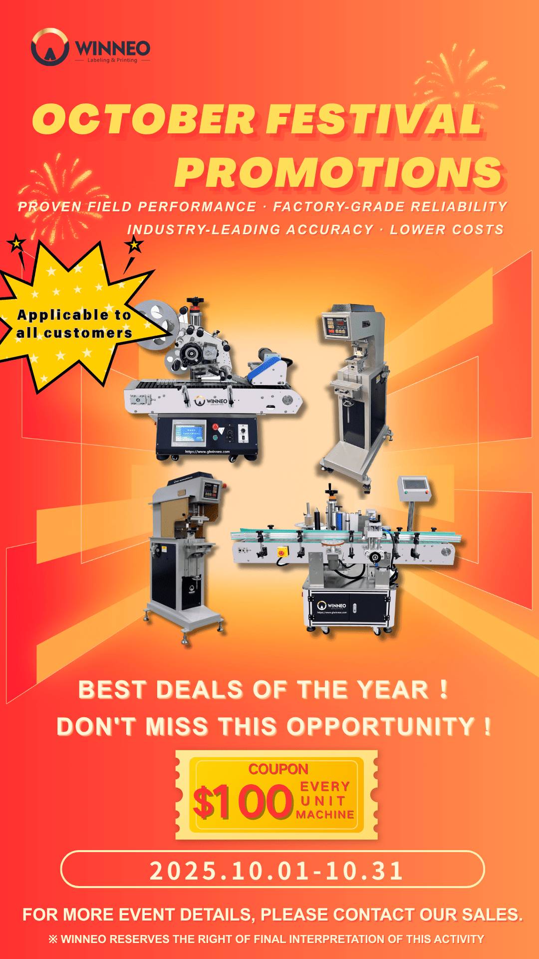 This promotion applies to equipment and consumables purchased directly from Winneo and is designed for production customers seeking reliable, factory-grade solutions and responsive global support. For details on eligibility, lead times, and technical inquiries, please contact our sales team: