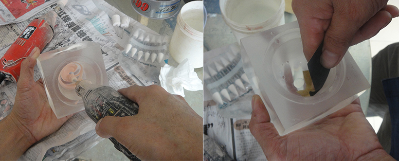 Il silicone contiene impurità, un eccesso di olio di silicone danneggia la struttura o le dimensioni non corrispondono al motivo (per motivi più grandi utilizzare un tampone piccolo), rendendolo soggetto a crepe e invecchiamento.